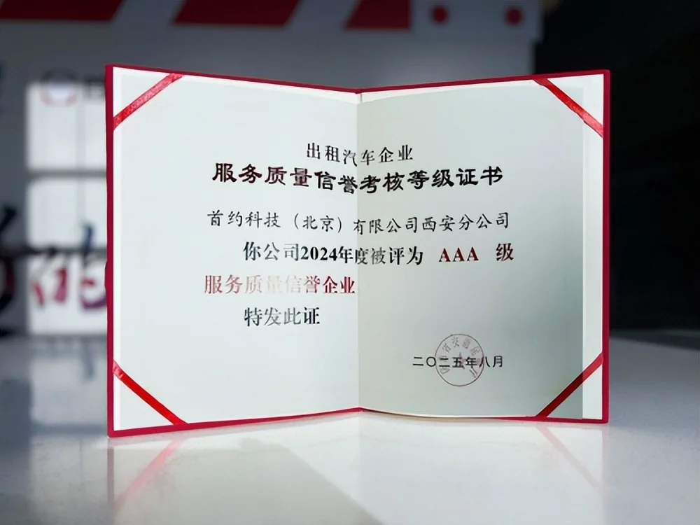 近日,西安市交通运输局公布2024年度出租汽车企业服务质量信誉考核结果,首汽约车西安分公司凭借在安全运营、服务品质及社会责任等维度的卓越表现,成功斩获AAA级评定,成为西安网约车行业高质量发展的典范代表。